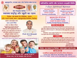 Chiloda: Parwarik Shanti Aur pramatam anubhuti Shivir 30 Nov se 2 December 6.30 am 07.30 to 9.00 pm Prof E.V Girish Brahma Kumaris Jagdamba Bhawan, Chiloda 9879612120, 8160806996