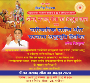 Gandhinagar The Untold secrets of shrimand Bhagavad Gita 16 to 20 Nov, 7.30pm to 9.30pm & Gos's Divine Present, 17 to 20 Nov, 6.30am to 8am BK Usha, at Rang Manch Sec-28 Gandhinagar 9979099922 9979866777